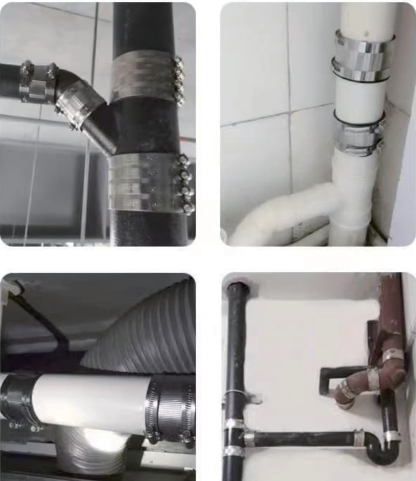For underground installations, it’s important to use shielded no hub coupling or heavy-duty no hub couplings that feature corrosion-resistant stainless steel shields and robust rubber sleeves. These components prevent soil moisture, pressure, and temperature changes from compromising the seal.