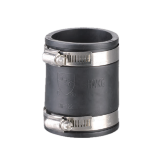HWKG Flexible Pipe Couplings are used in plumbing and wastewater jobs. They also work in HVAC and irrigation systems. These couplings join pipes made of PVC, steel, cast iron, or copper.